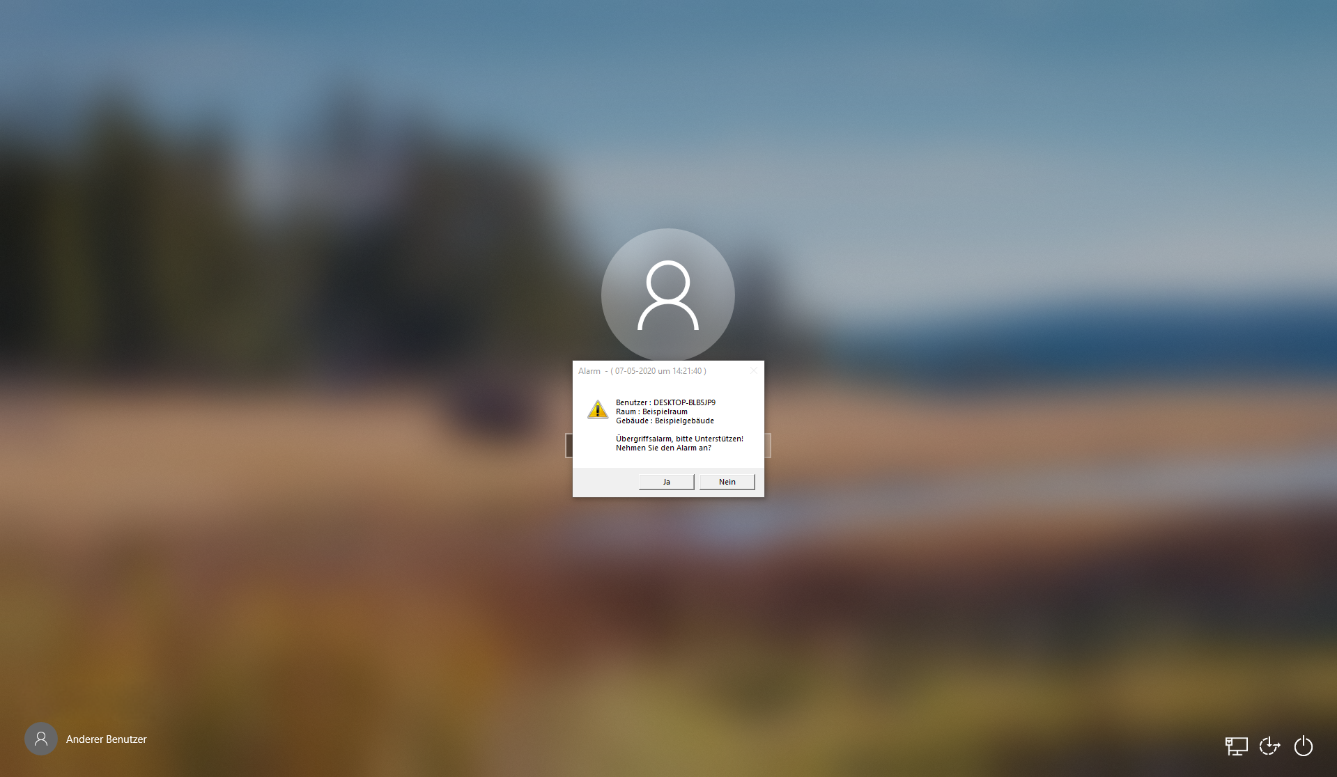 Sowohl der Alarmempfang als auch das Auslösen eines Alarms über unseren USB- oder Bluetooth-Taster ist im Windows-Sperrbildschirm möglich.
